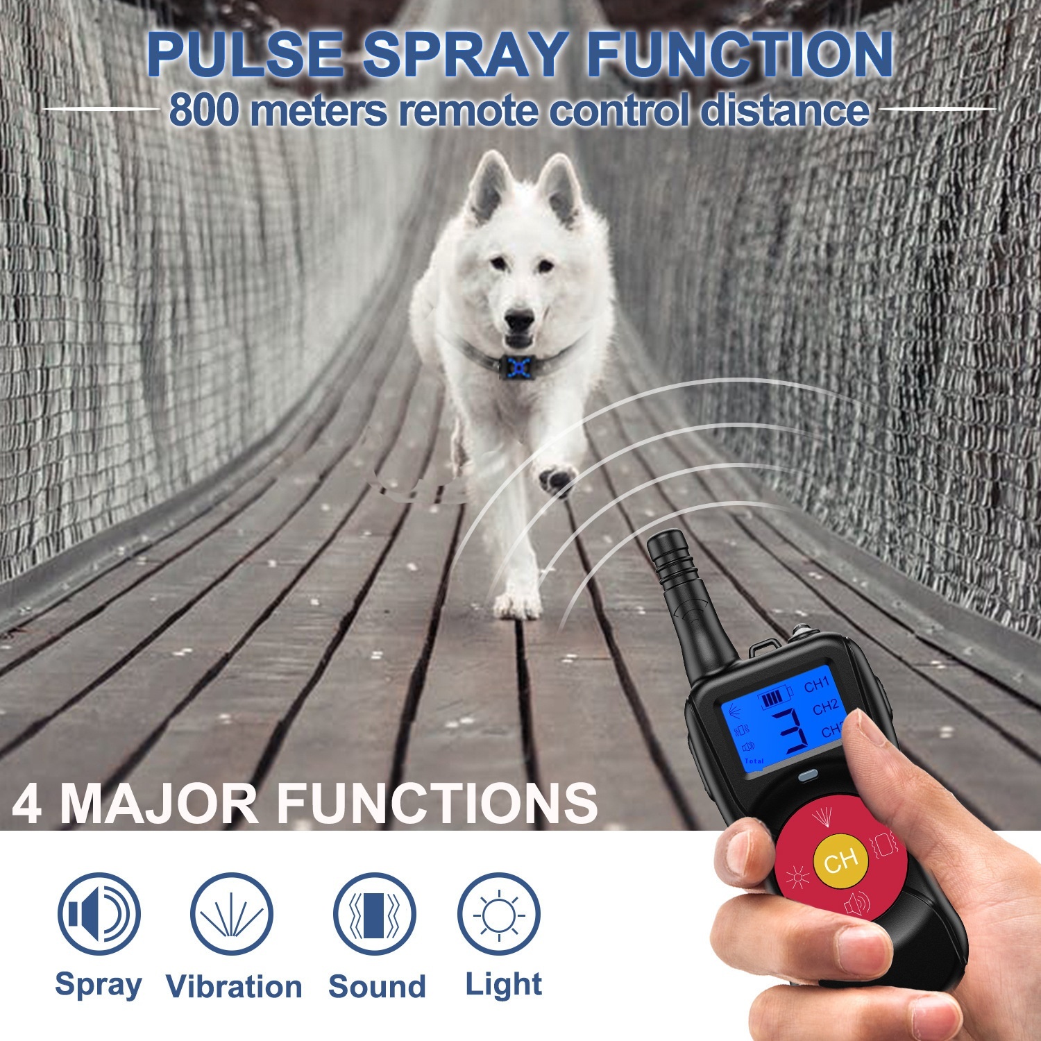 Remote Control Spray Dog Trainer Barking Stopper800 Meters Touch Switch Harmless Training Non-electric Shock Collar Pet Supplies