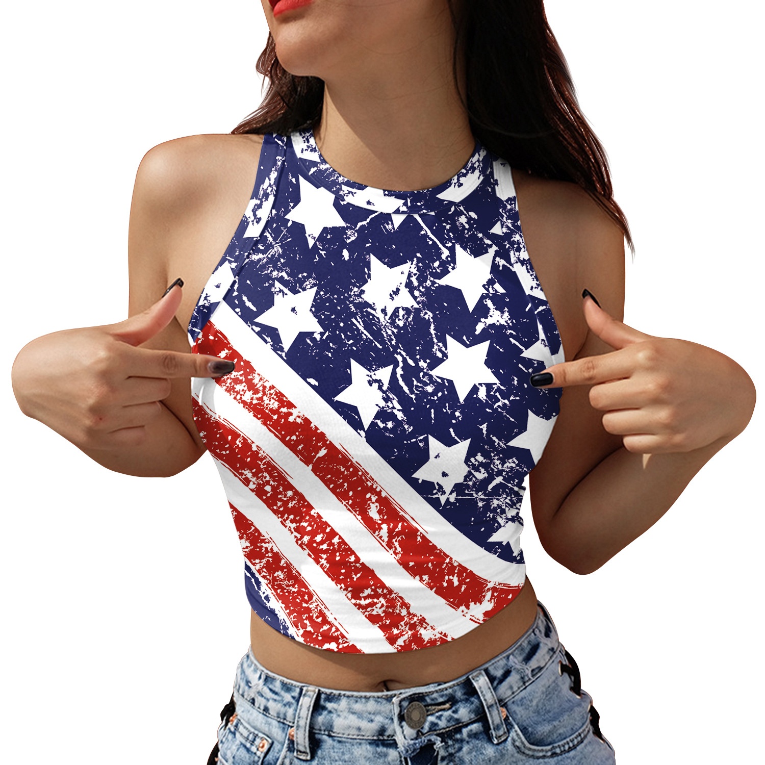 American Independence Day Flag Digital Print Sleeveless Off-shoulder Vest Short Bottom Tank Top
