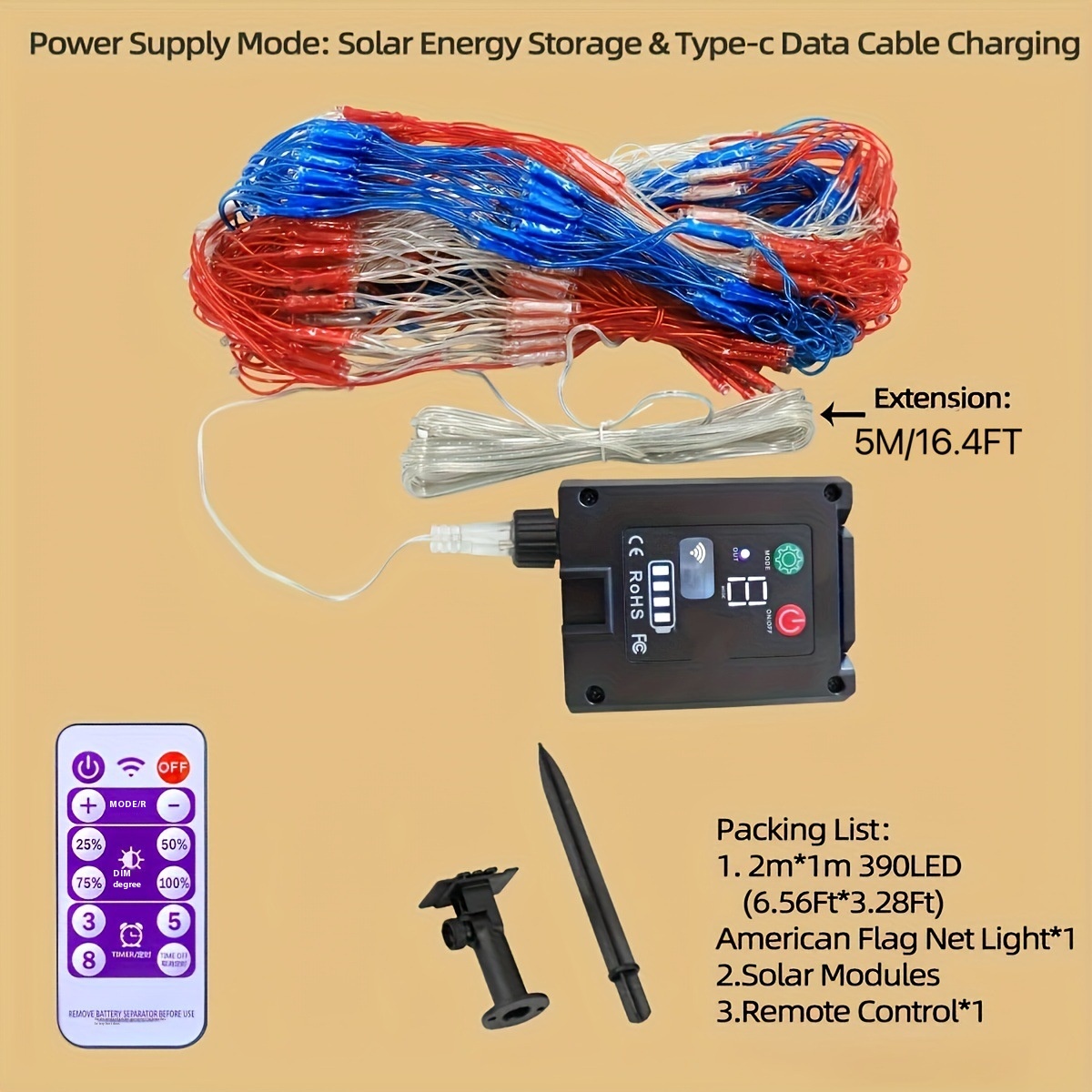 American Independence Day Decorative Light String Solar Flag Net Light