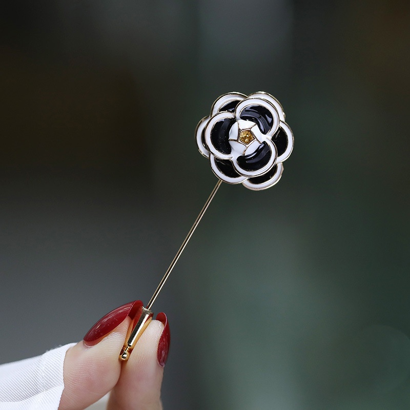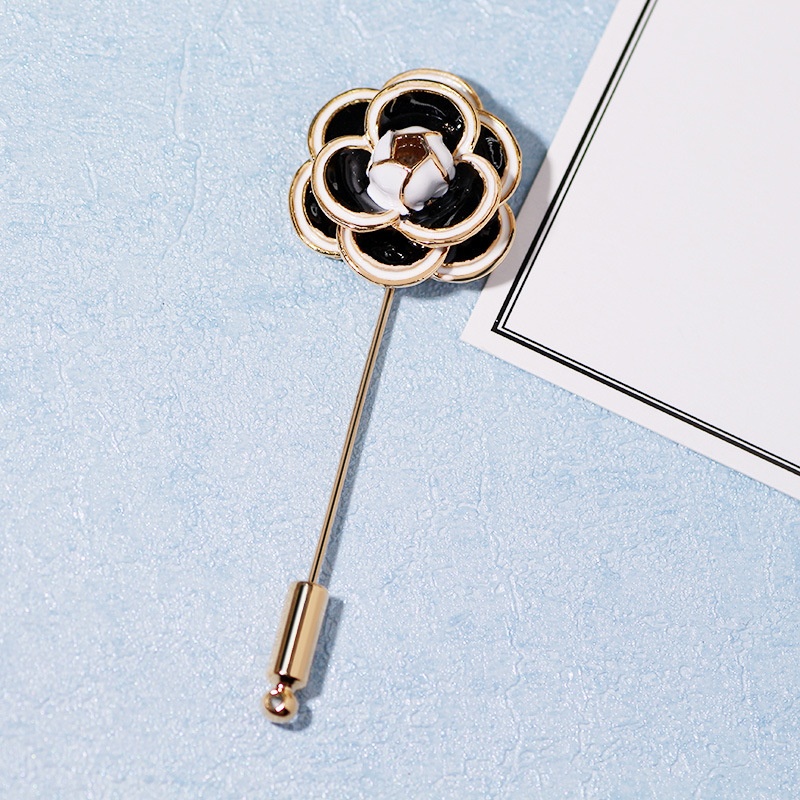 Dilixue Classic Multi-layer Three-dimensional Camellia One-word Pin Small Collar Pin Clothing Fixed Pin Brooch Accessories