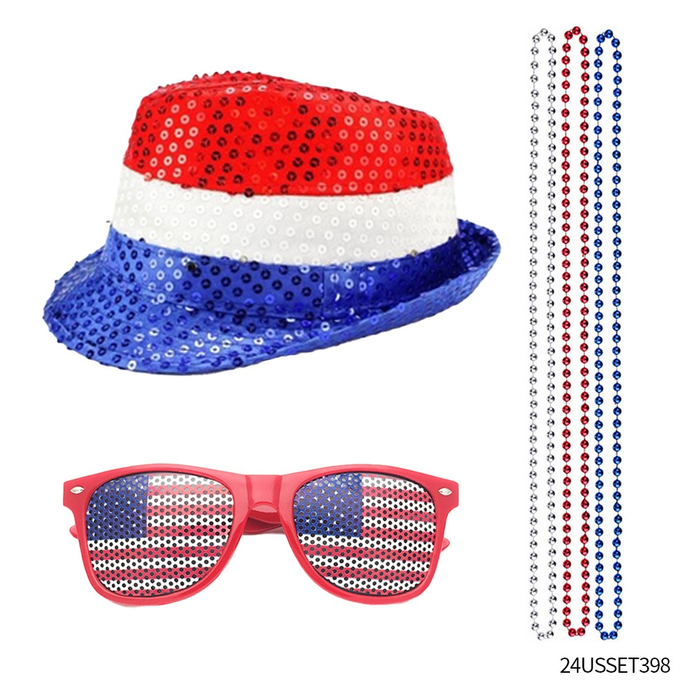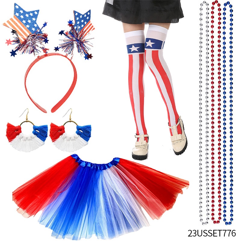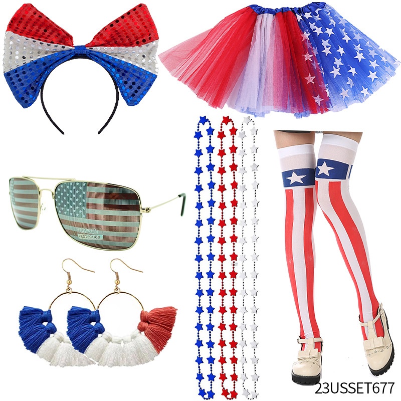 American Independence Day Flag Gauze Dress Set Independence Day Glasses Wig Earrings Clothing Accessories