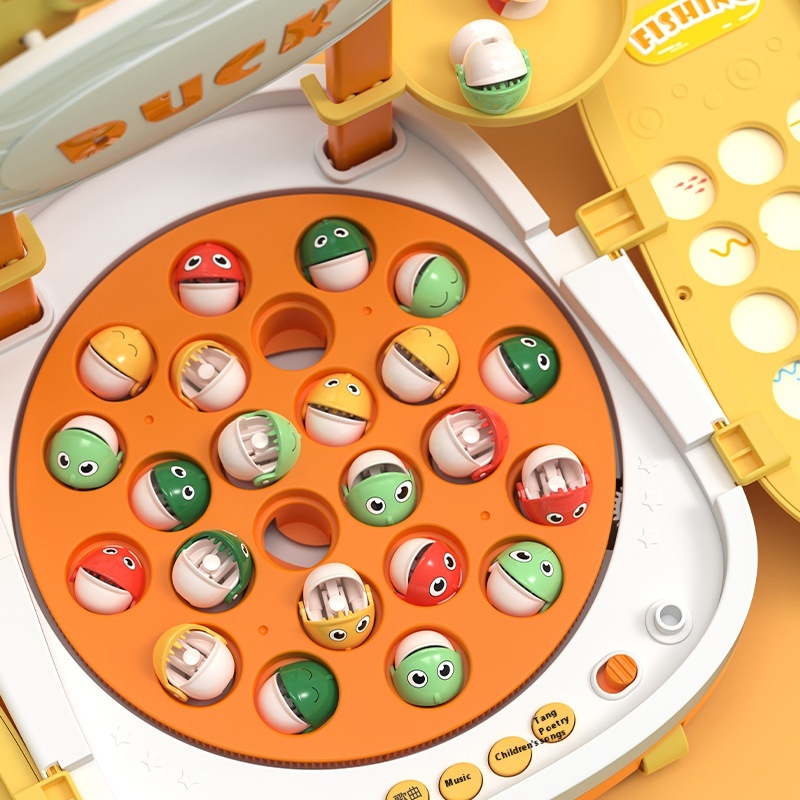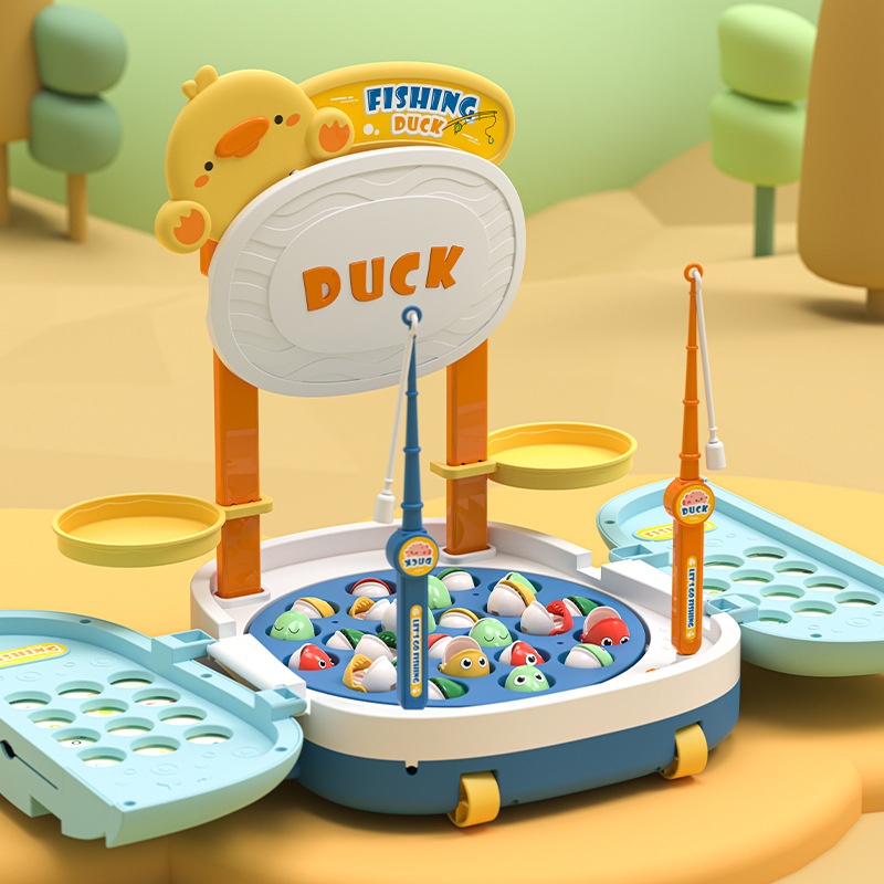 Children's Electric Rotating Magnetic Fishing Cute Duck Trolley Case Multifunctional Music Early Education Educational Parent-child Interactive Toy