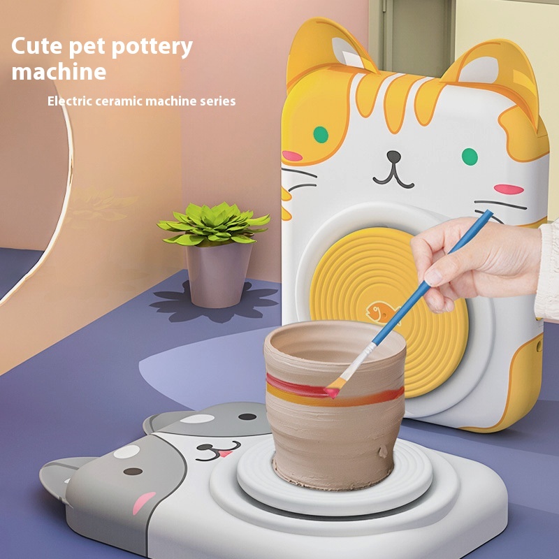 Cute Pet Pottery Machine Children's Handmade Electric Clay Machine Free Baking Educational Fun Clay Sculpture Diy Pottery Throwing Machine