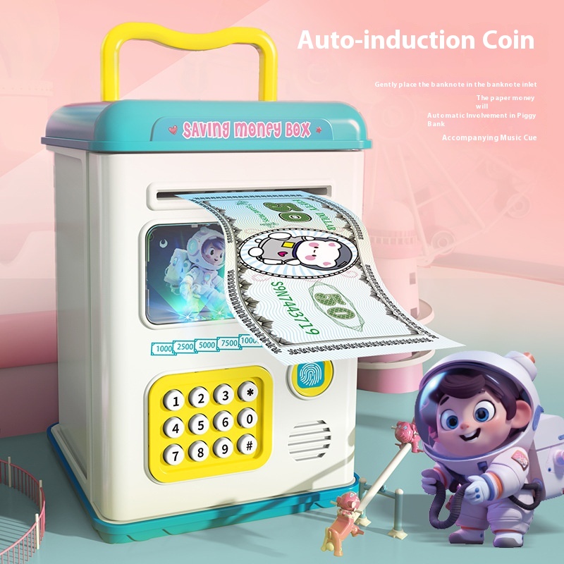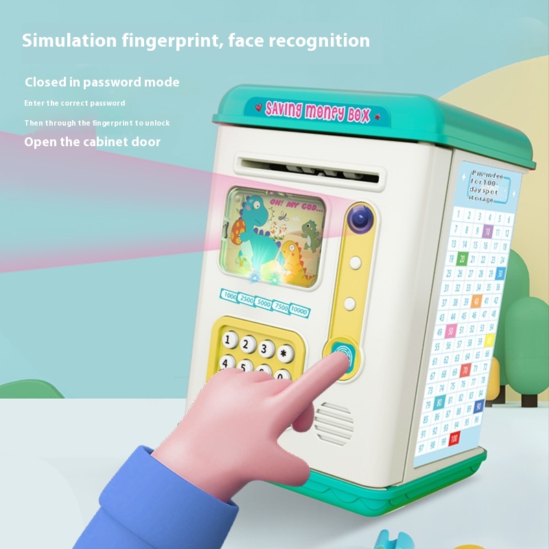 Children's Piggy Bank With Large Capacity,Password Fingerprint Unlocking,ATMPassword Safe,Can Enter And Exit The Money Box