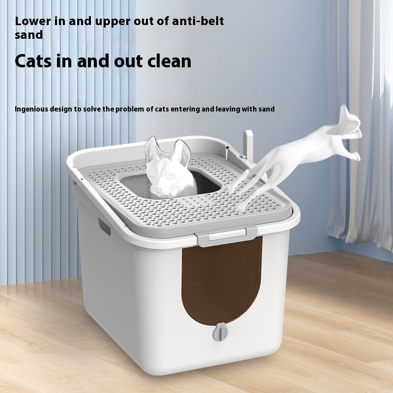 Cat Litter Box Fully Enclosed Top-entry Oversized Bucket Cat Toilet Anti-splash Sand Cat Supplies Top-out Cat Litter Box