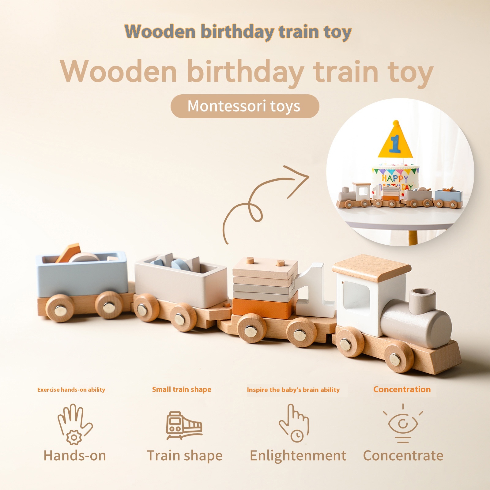 Children's Cake Decoration Ornaments Small Train Birthday Party Dress Up Toy Track Set Wooden Small Train