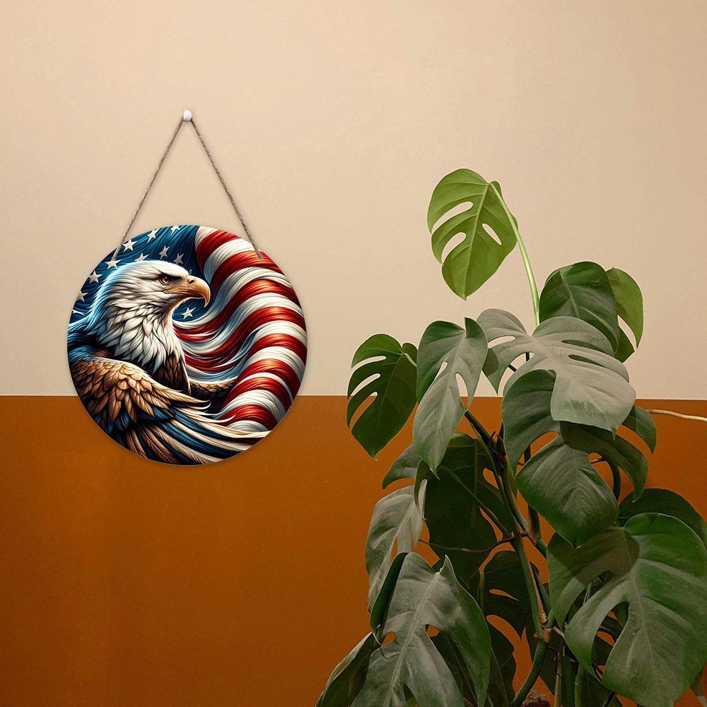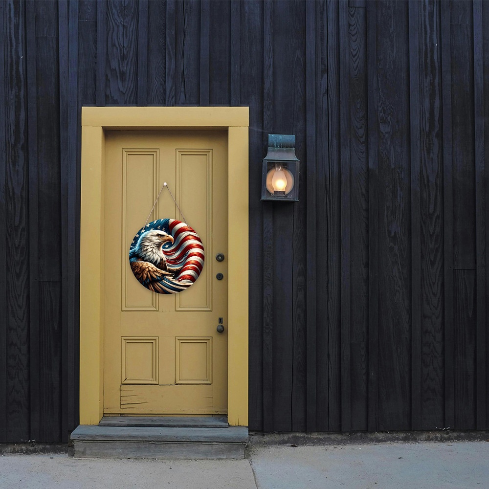 American Flags Decorate The Entrance Hallway Wooden Signs Decorate The Independence Day Atmosphere Props