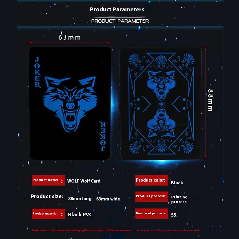 Waterproof Plastic Playing Cards Wolf Head Black And Blue PVCPlaying Cards Non-slip And Washable