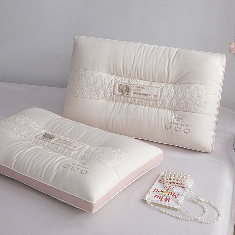 Embroidered Camel Hair Protein Pillow Core Single Pillow To Protect The Cervical Vertebrae And Help Deep Sleep For Adults