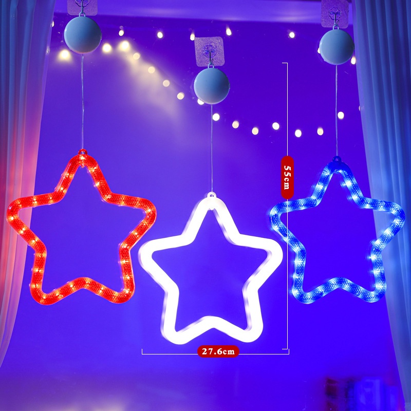 LEDFive-pointed Independence Day Horse Hanging Lights Atmosphere Decorative Lights Window Decoration Suction Lamp