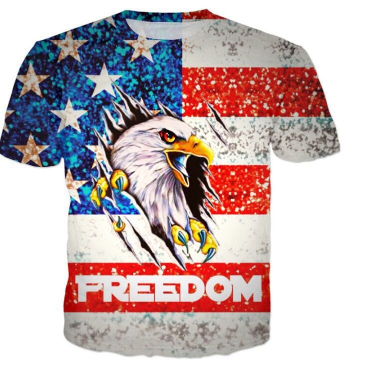 Fashion Summer T-shirt Independence Day American Flag Eagle Pattern3 DDigital Printing Loose Short Sleeve One Piece Dropshipping