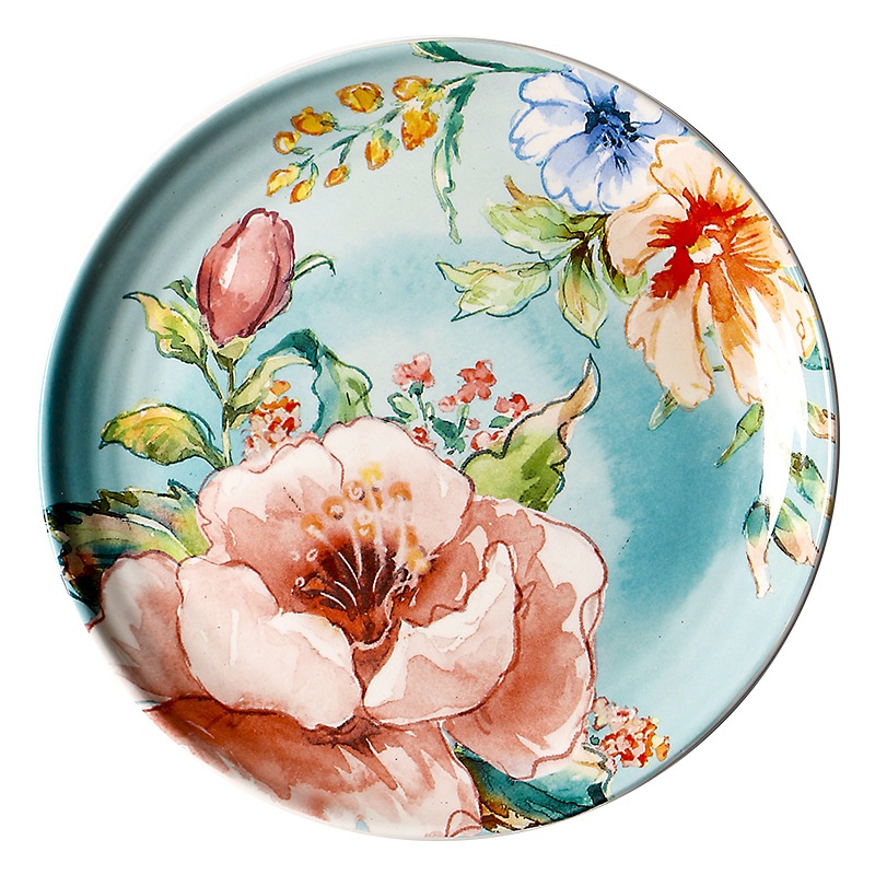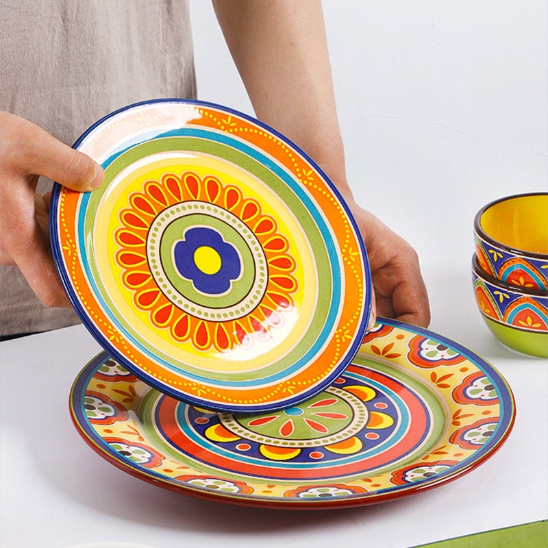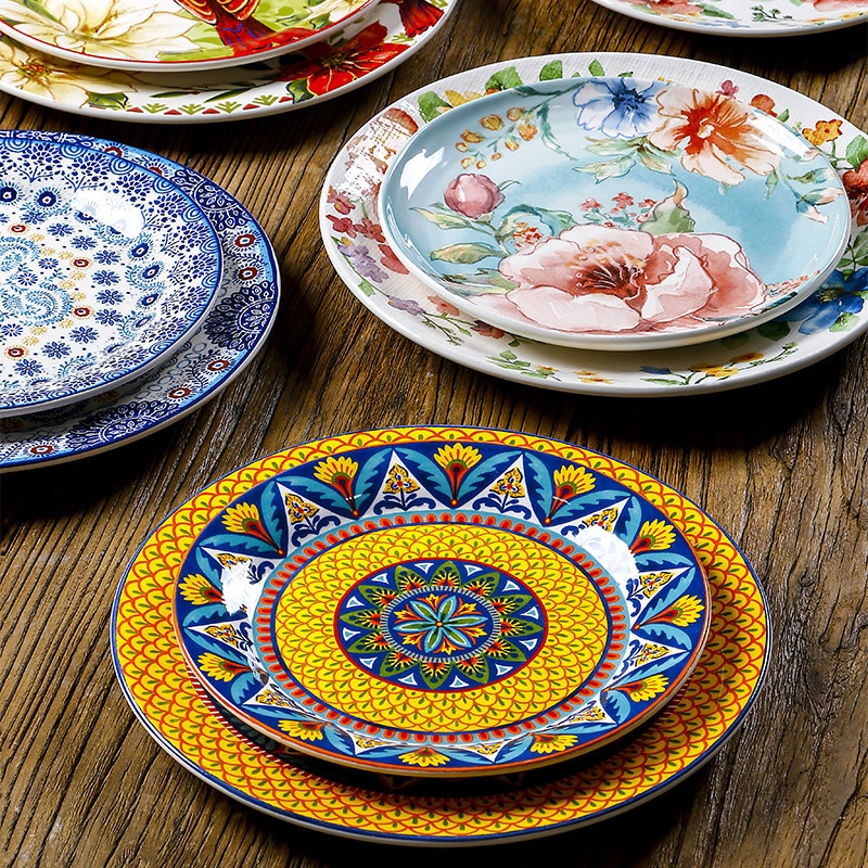 European And American Ceramic Plate Round Steak Pasta Plate Underglaze Color Flat Plate9-inch Thai Restaurant Plate