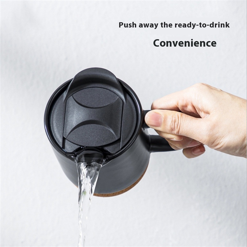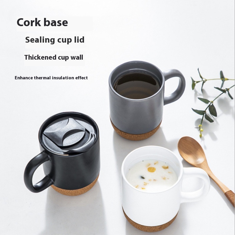 Ulated Ceramic Water Cup Cork Base Mug Black White Gray Simple Coffee Cup With Lid Milk Oatmeal Cup
