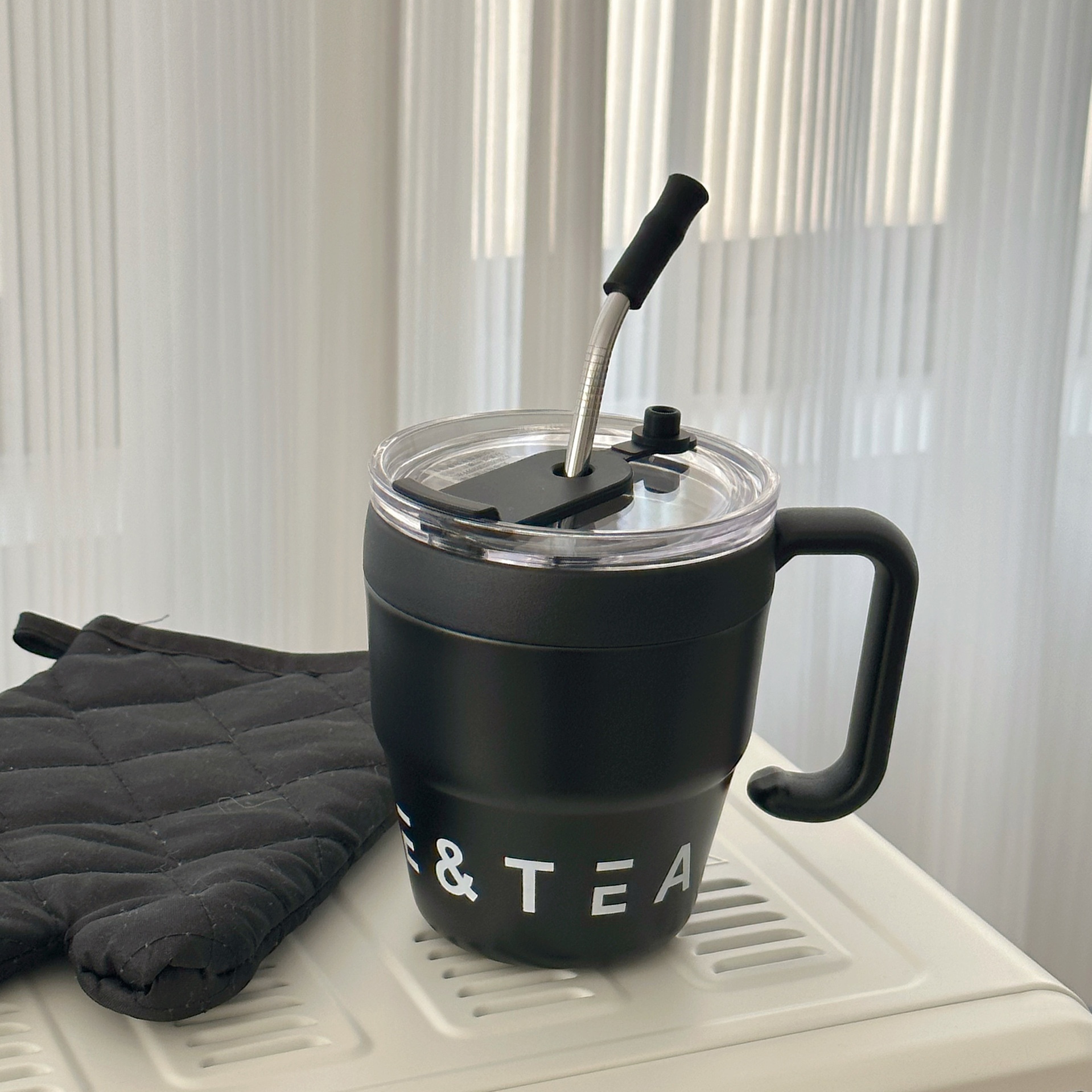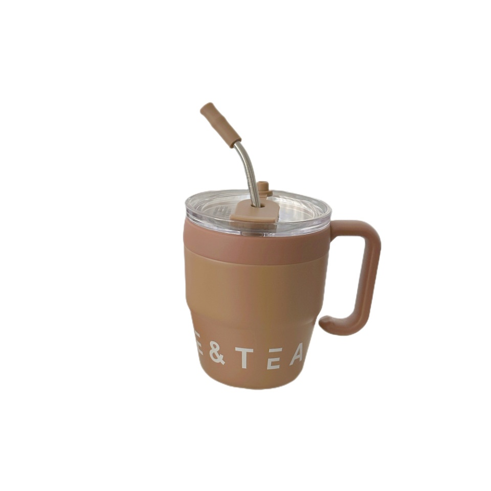 Thermos Cup Women's High-value Water Cup Office Stainless Steel Straw Cup Double Drink Coffee Cup Mug
