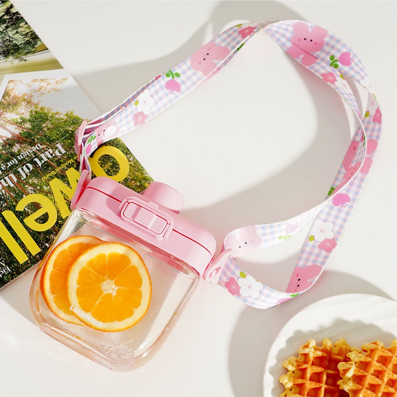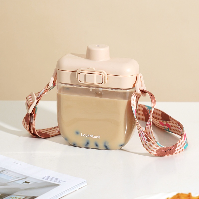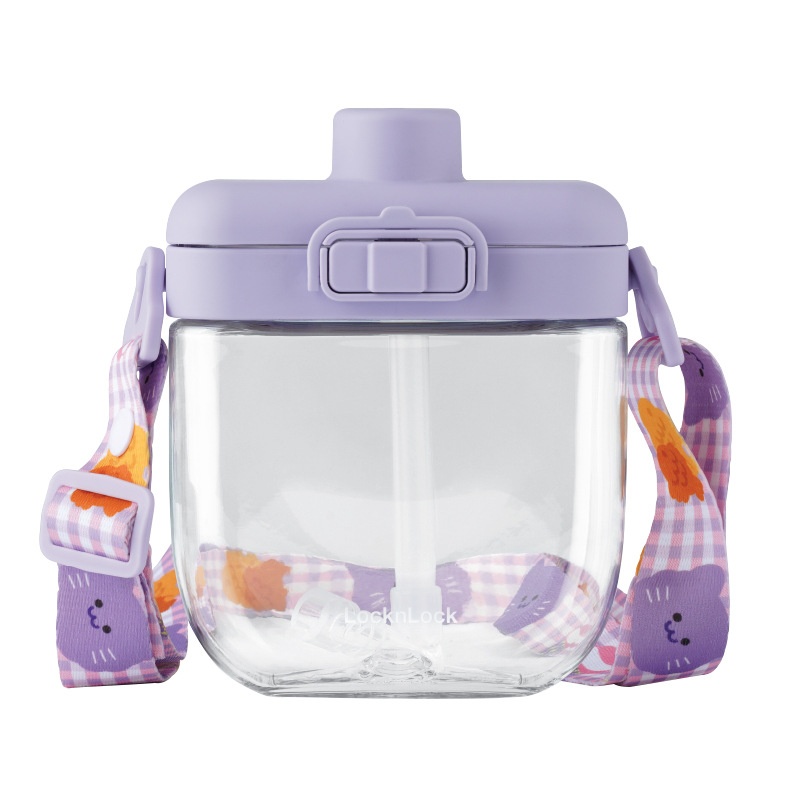 Lock&Lock High-value Student Straw Water Cup Bouncing Strap Portable Anti-fall Large-capacity Children's Plastic Cup