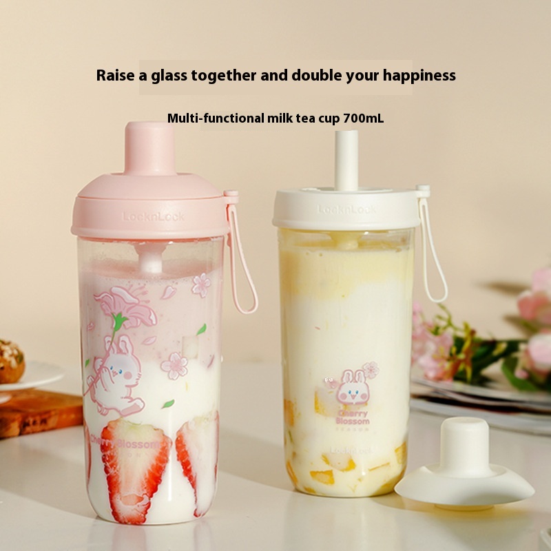 LOCK&LOCKMilk Tea Cup Plastic Cup Straw Cup Portable Handle Water Cup Female Juice Cup