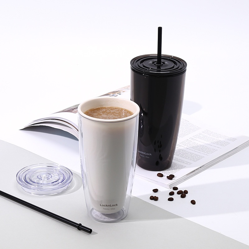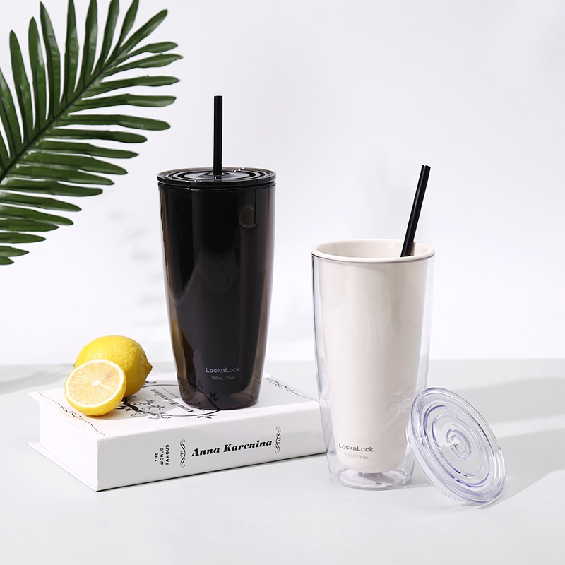 Lock&Lock Style Straw Cup Milk Tea Cup Plastic Tea Cup Large Capacity Girl Handy Cup Cute Cup