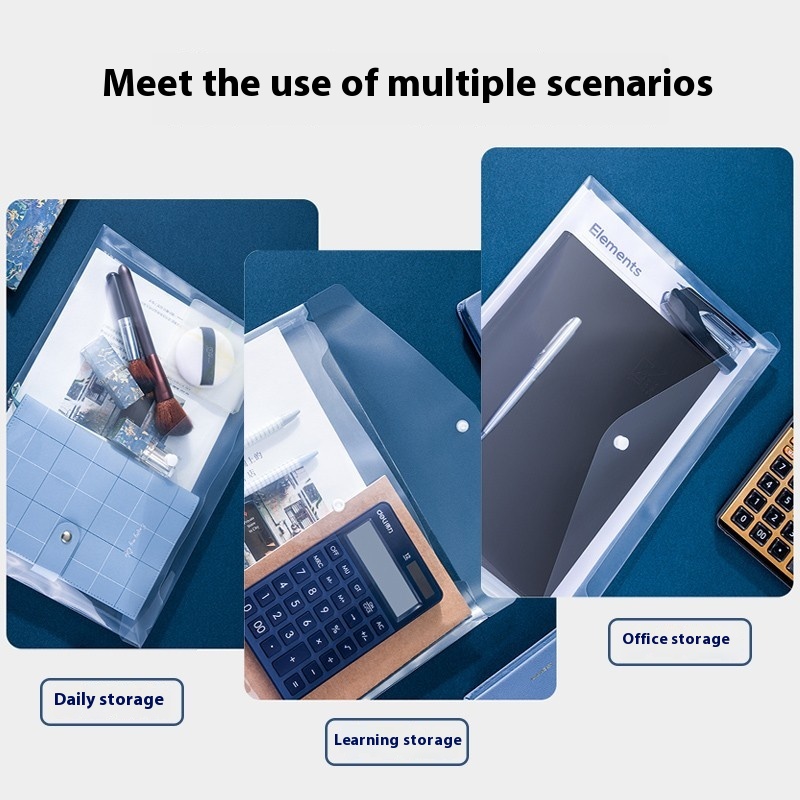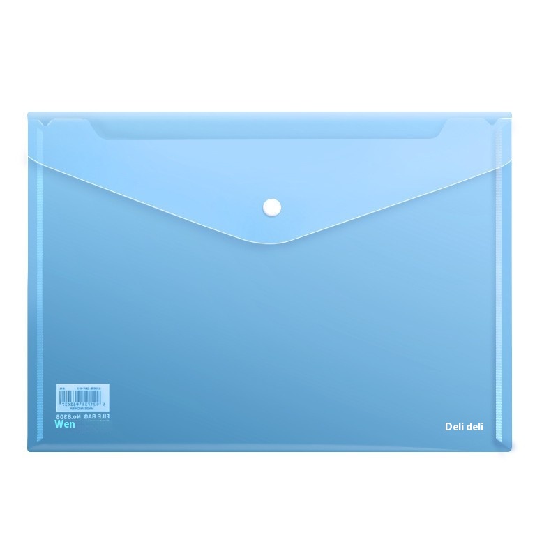 Deli A4 File Bag Transparent Blue Folder Thick Waterproof Buckle Bag Information Bag Storage Office Supplies