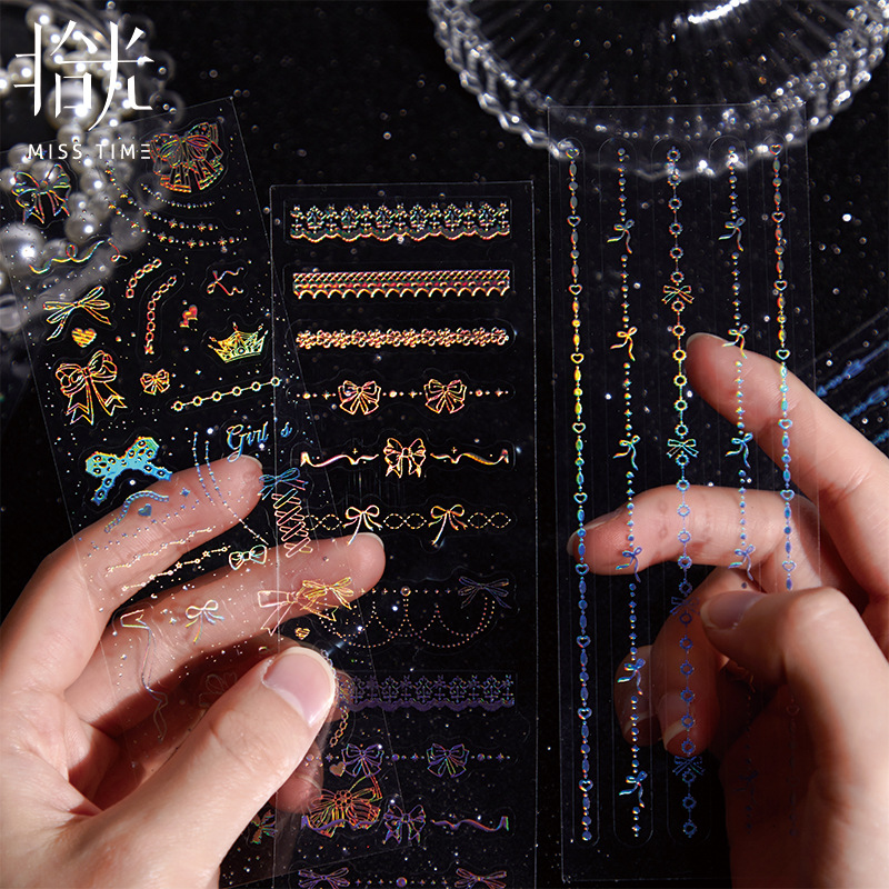 Shiguang Guka Sticker Chain Misty Rose Three-dimensional Hot Stamping PETHandbook Diy Frame Mobile Phone Shell Sticker Collage