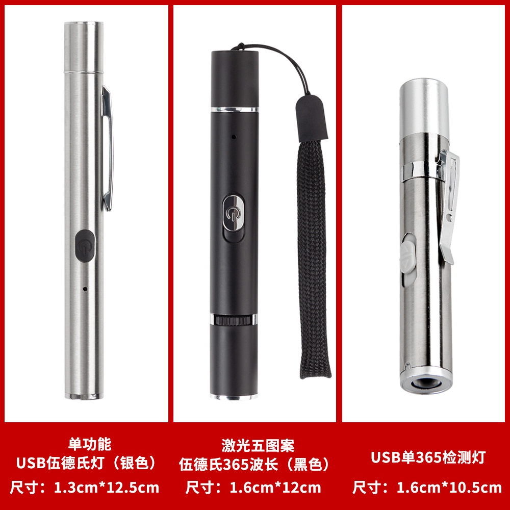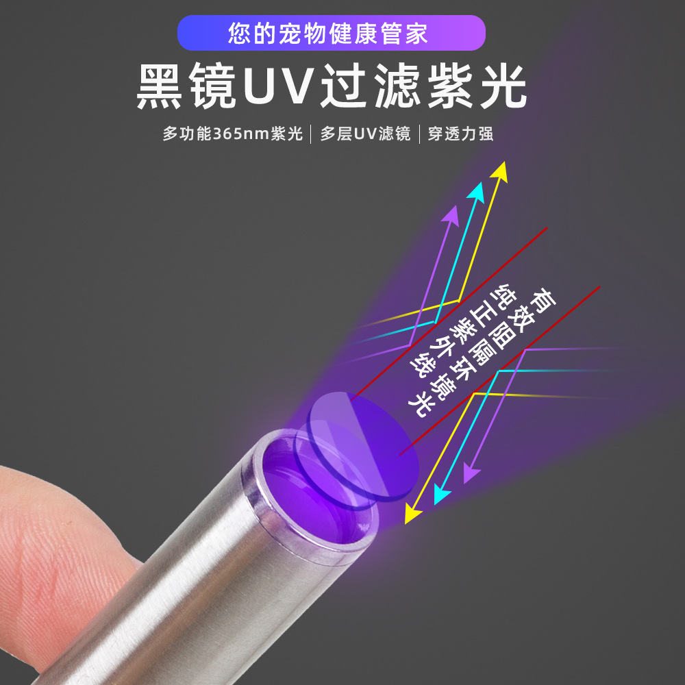 USBCharging365nm Purple Flashlight UVUrine Stain Fungus Cat Ringworm Detection Black Mirror Wood's Cat Ringworm Lamp