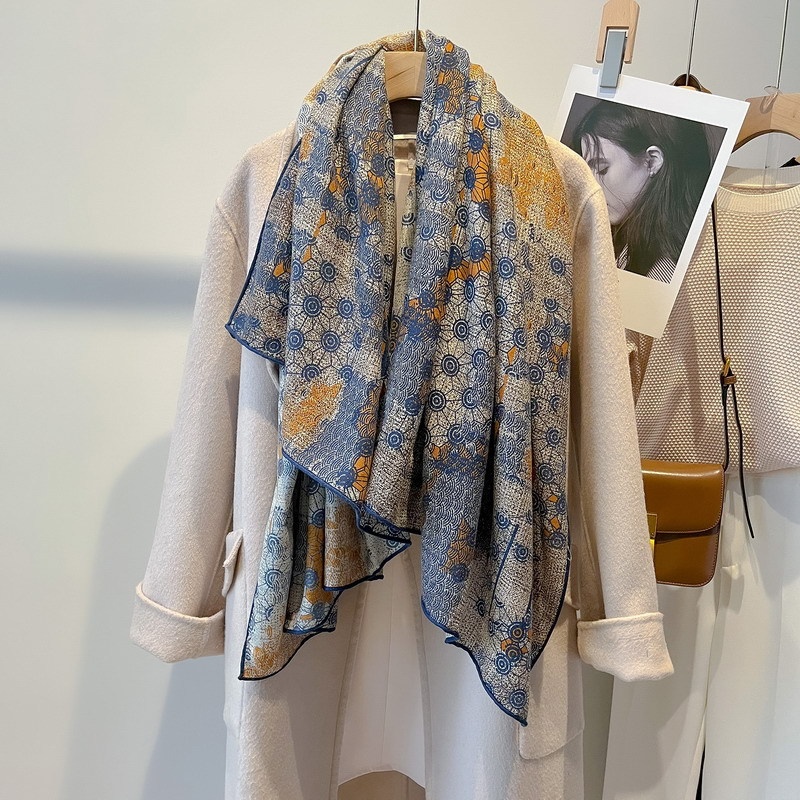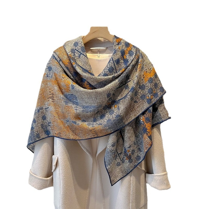 Liuxu Weimeng Light Luxury Silk Wool Large Square Scarf Women's Autumn And Winter Versatile Office Warm Scarf And Shawl Dual- Purpose