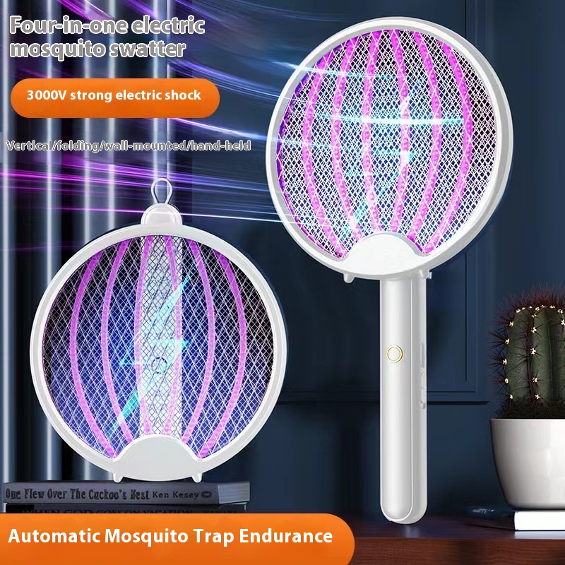 Innovative4-in-1 Foldable Electric Mosquito Swatter Rechargeable Light Wave Mosquito Trap Mosquito Killer Lamp Home Wall-mounted Mosquito Swatter