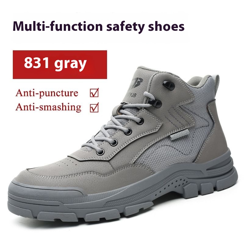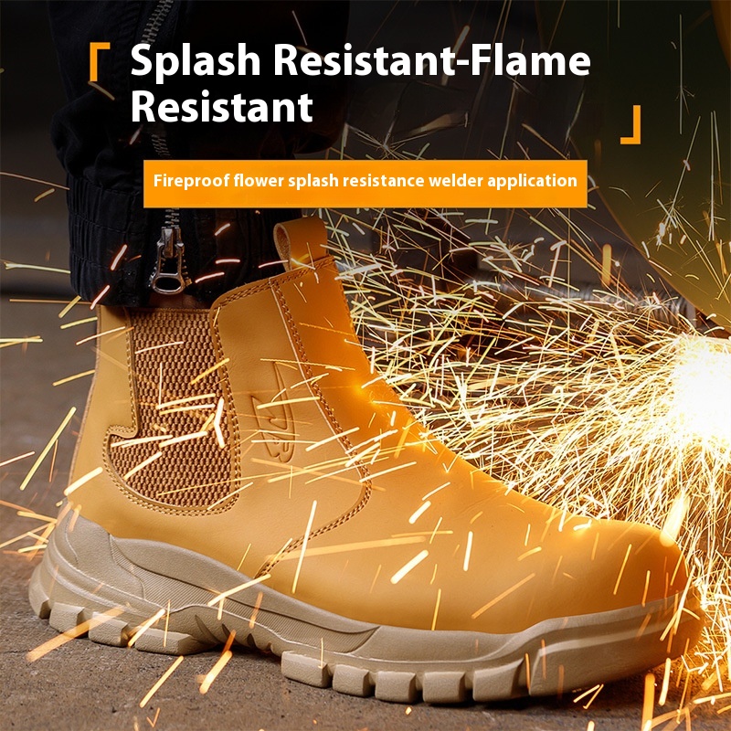 Four Seasons Men's Steel Toe Safety Shoes Microfiber Leather Slip-on Safety Shoes Anti-smash And Anti-puncture Safety High Top Shoes