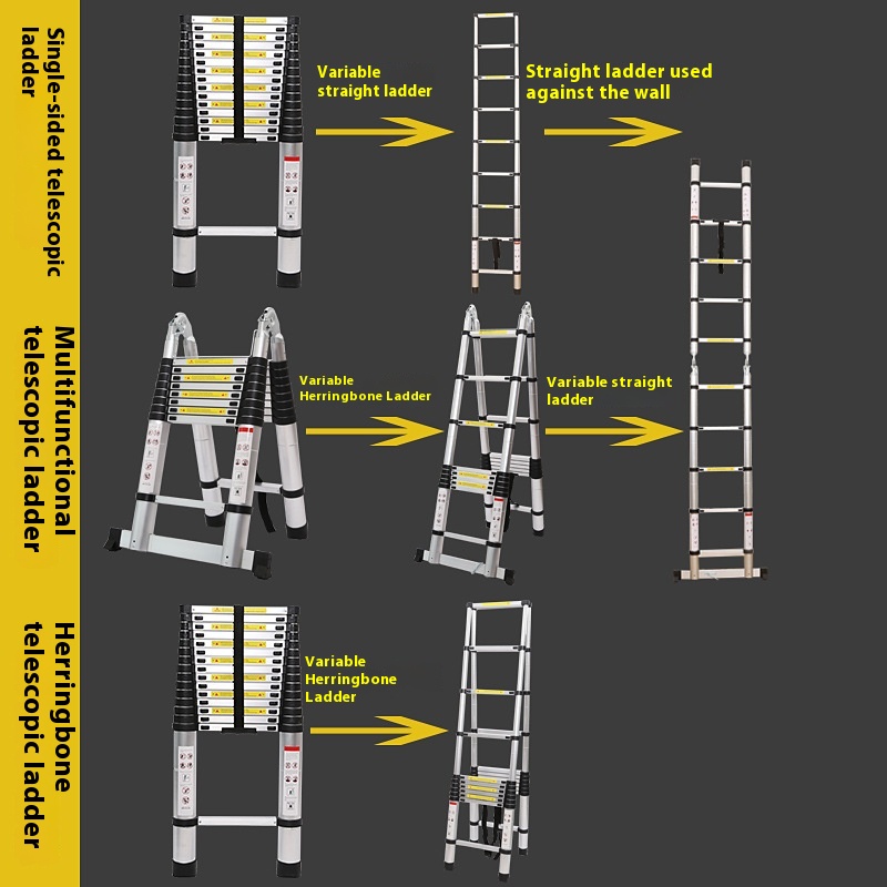 Telescopic Ladder Lifting Ladder Thickened Aluminum Alloy Herringbone Ladder Household Multifunctional Folding Ladder Bamboo Ladder