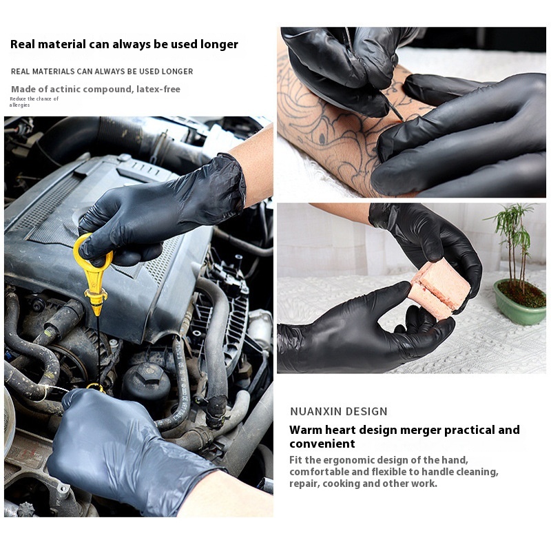 Wanli Nitrile Disposable Gloves Black Nitrile Gloves Tattoo Gloves High Elastic Protection Food Grade Acid And Alkali Resistant
