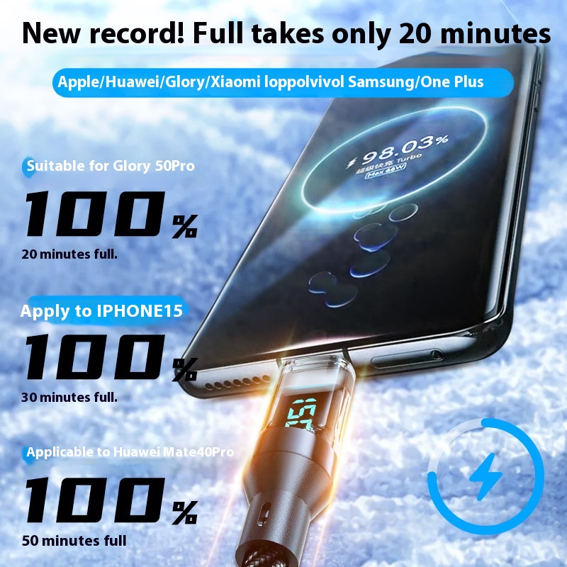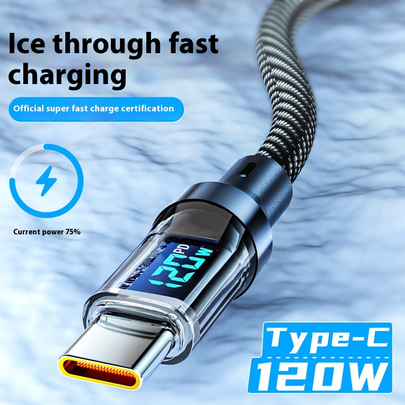6 ABraided Fast Charging Digital Display Data Cable Typec Interface Fully Compatible With LEDScreen Real-time Power120 WCharging Cable