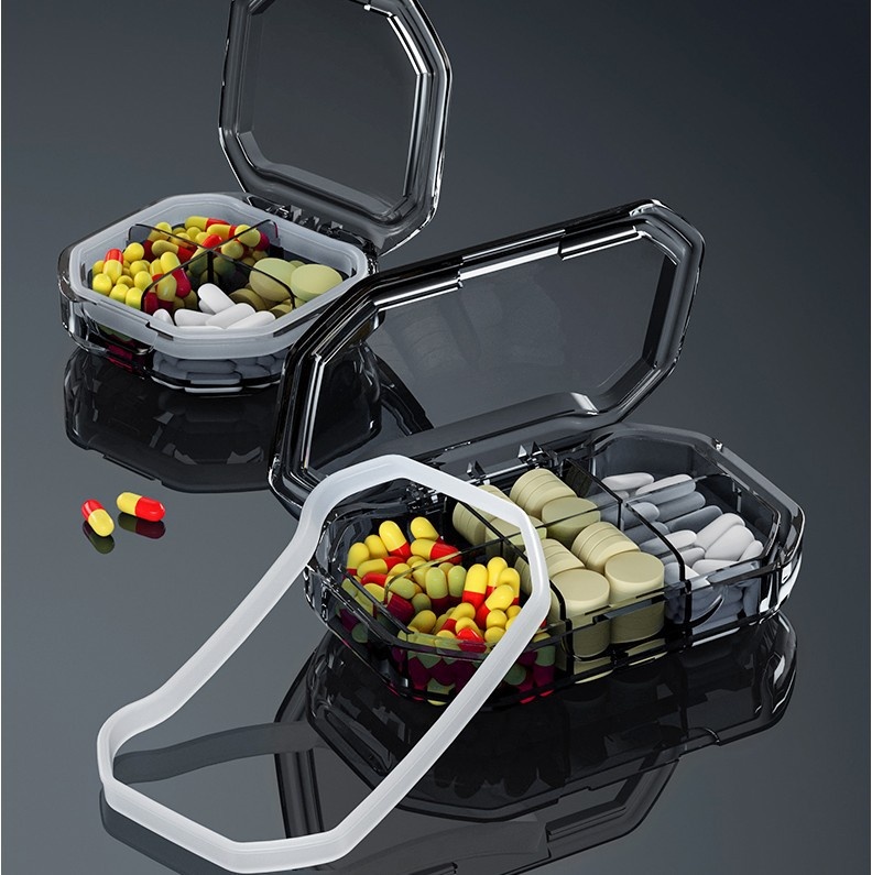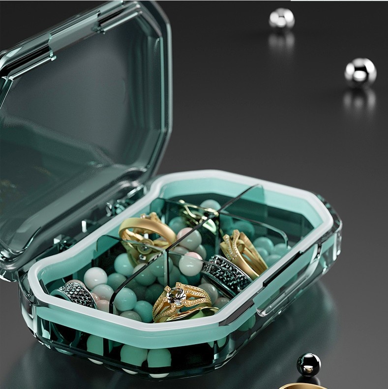Nordic Style Transparent Visible Sealed Silicone Moisture-proof Portable Small Quantitative Medicine Box Divided Jewelry Storage Box