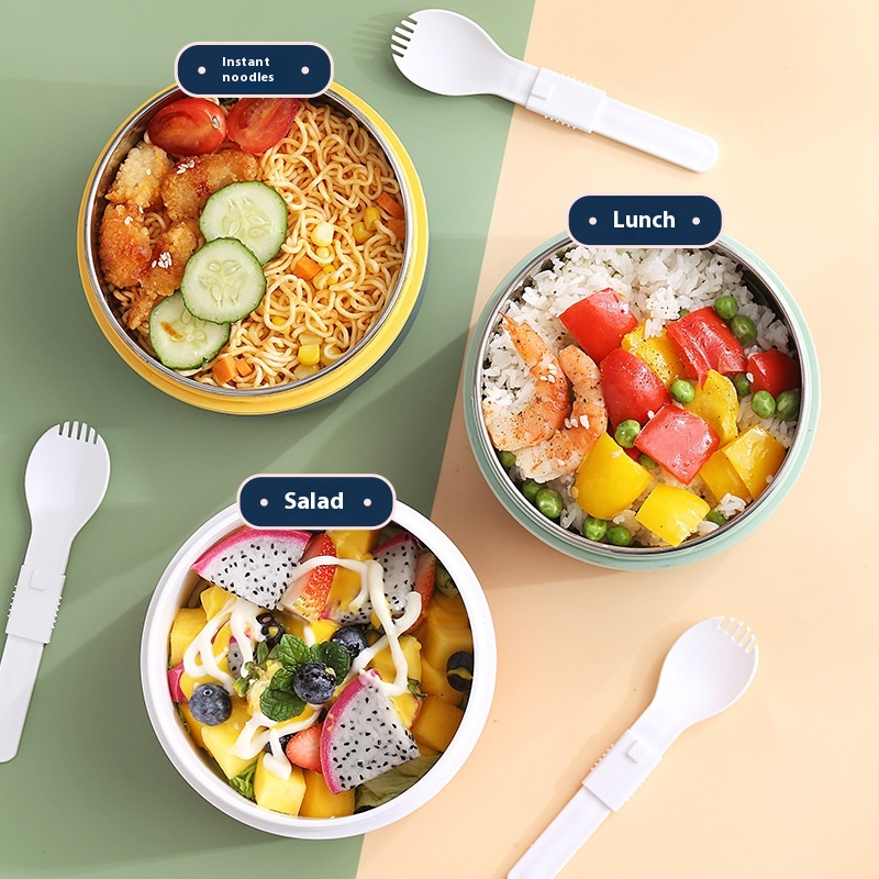 Studenttant Noodle Bowl304 Stainless Steel Rice Bowl With Lid Plastic Microwave Lunch Box With Spoon Salad Lunch Box Lunch Box