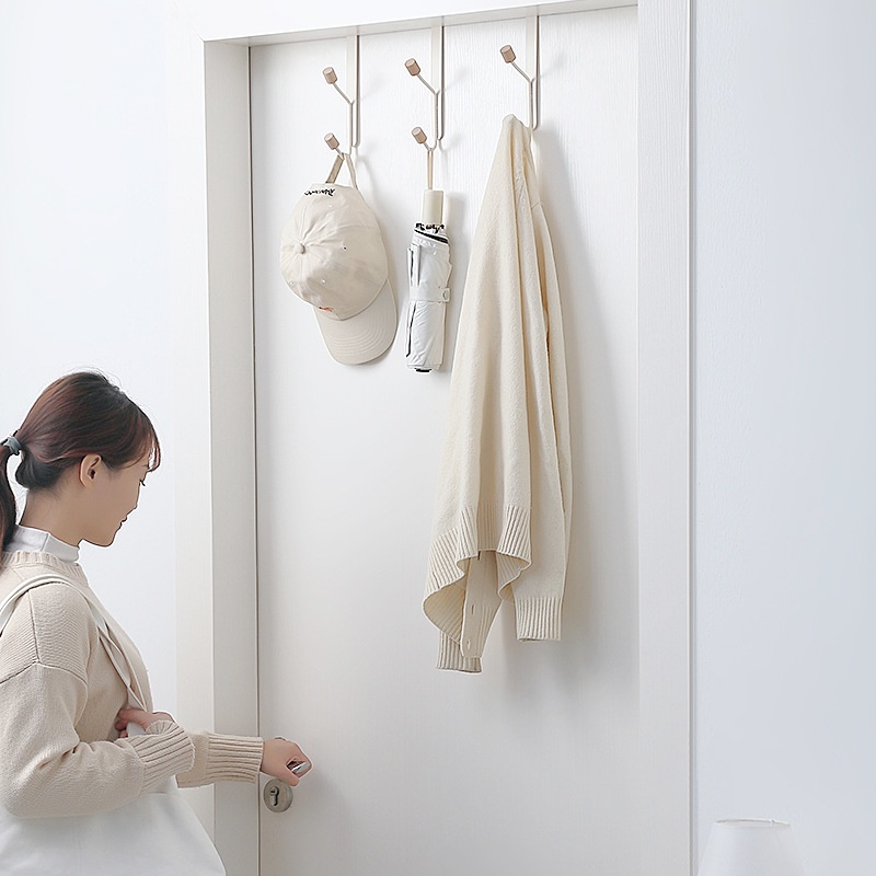 Punch-free Hanging Carbon Steel Door Rear Two-link Hook Porch Coat Key Bag Hanger Storage Rack