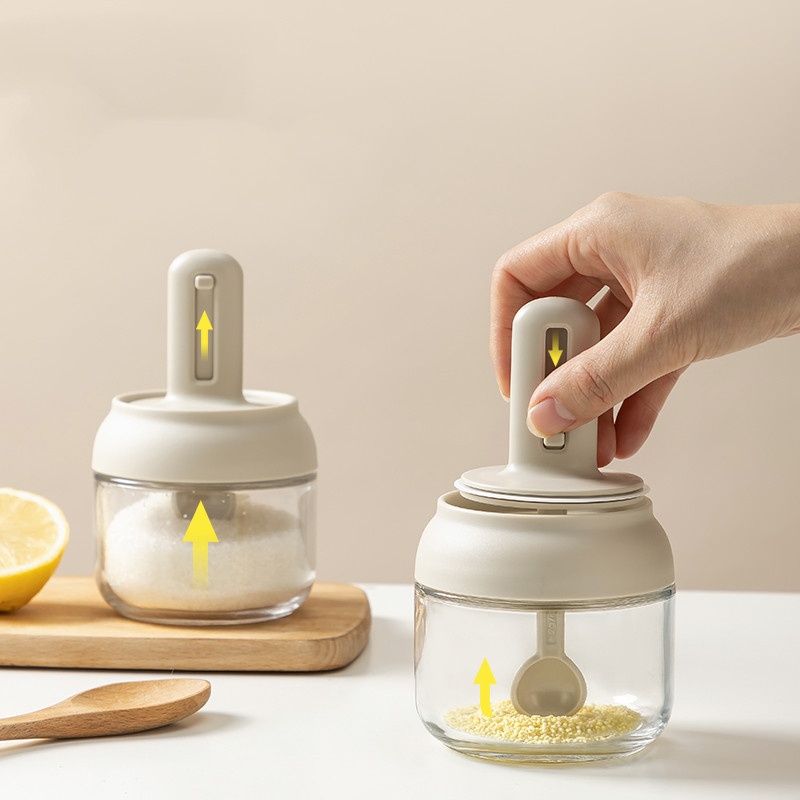 280ml Spoon-Lid Integrated Adjustable Spoon Spice Bottle:Kitchen Salt And MSGSeasoning Container