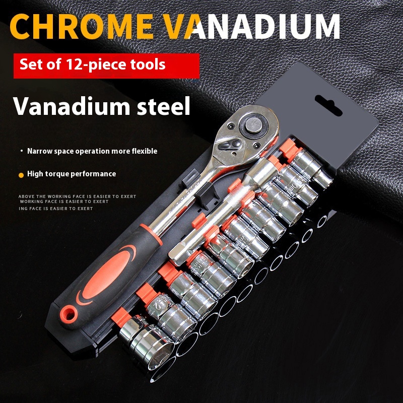 12-piece Multifunctional Car Repair Tool Ratchet Quick Socket Wrench Vehicle-mounted Vehicle Combination Tool Set