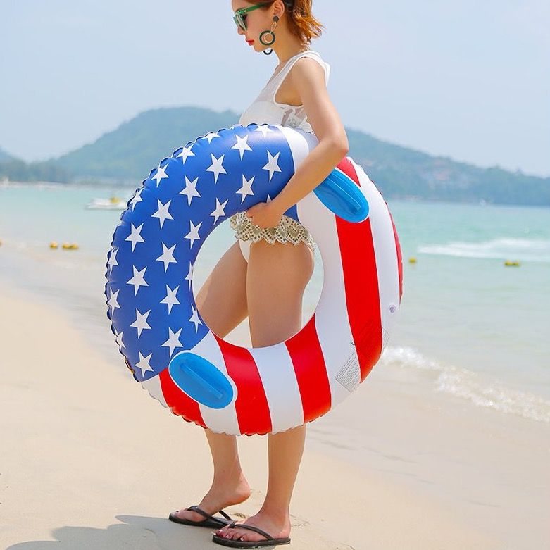 Beach Vacation American Flag Thickened Large Swimming Inflatable Float Ring