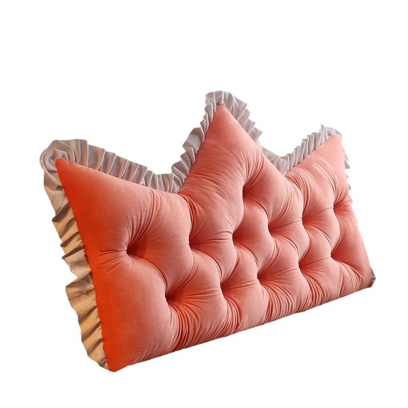 Bedside Cushion Crystal Velvet Crown Pillow Tatami Princess Wall Cushion Lace Sofa Waist Backrest