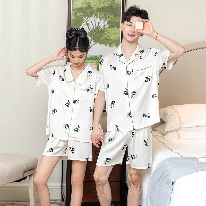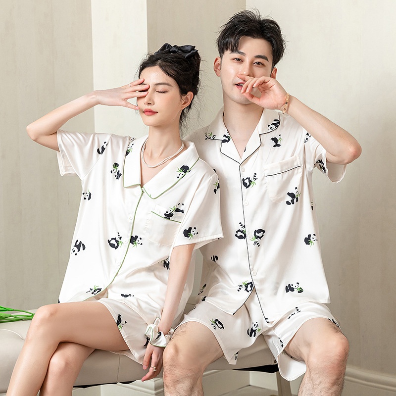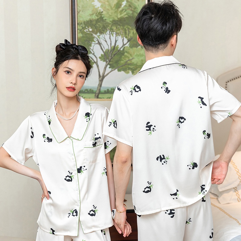 Internet Celebrity Panda Ice Silk Pajamas Women's Summer Doll Collar Large Lapel Short-sleeved Shorts Thin Home Clothes Men's Suit