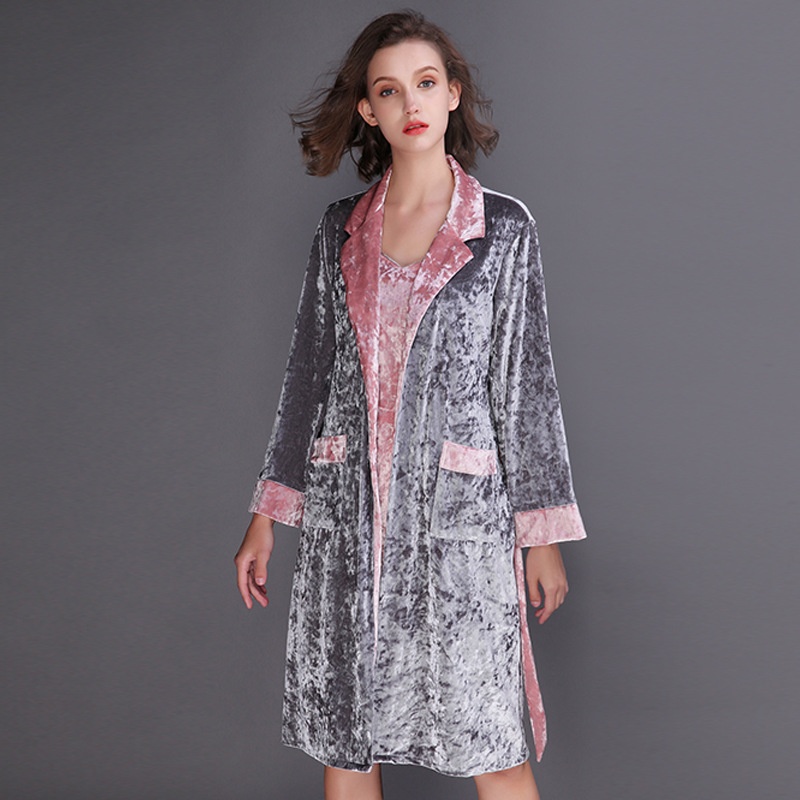Pajamas Women's Autumn And Winter Long-sleeved Gold Velvet Nightgown Two-piece Suit European And American Style Flannel Long Home Clothes