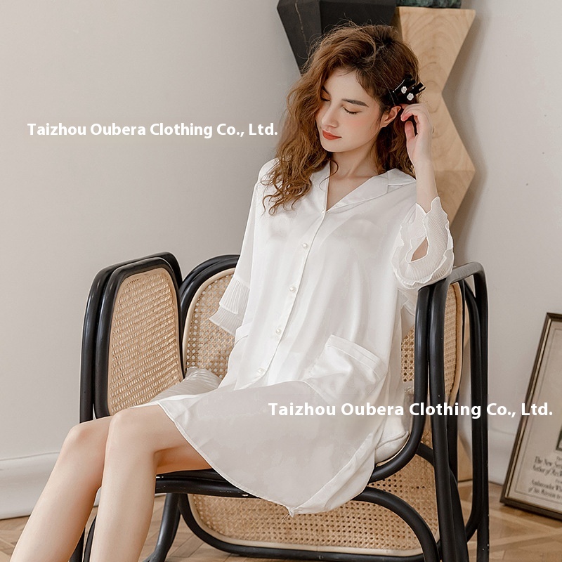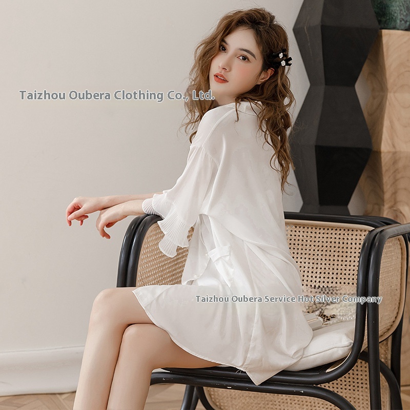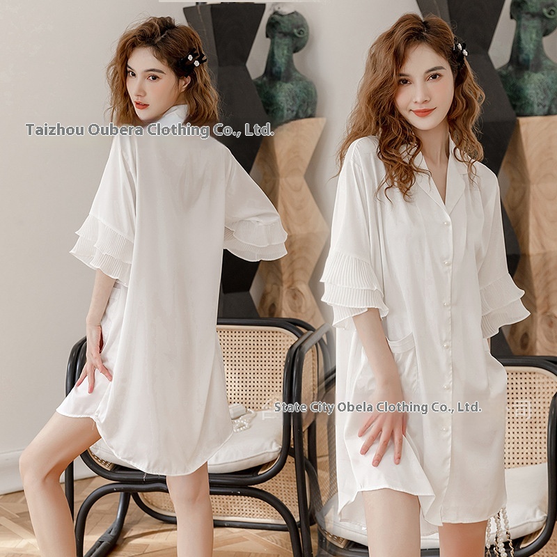 Spring And Summer Pure Desire Style Sexy Ice Silk One-piece Shirt Pajamas Women's Thin Loose Ruffled Nightdress Home Clothes