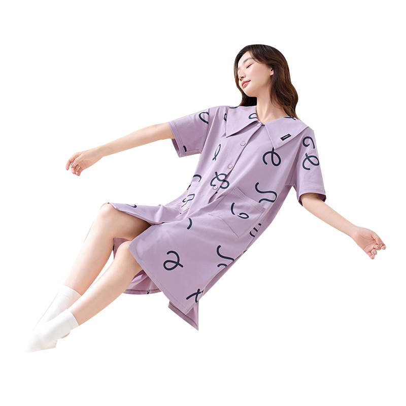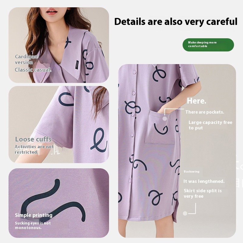 [With Chest Pad]Summer Women's Cotton Nightdress Summer Women's Short-sleeved Outdoor Home Clothes