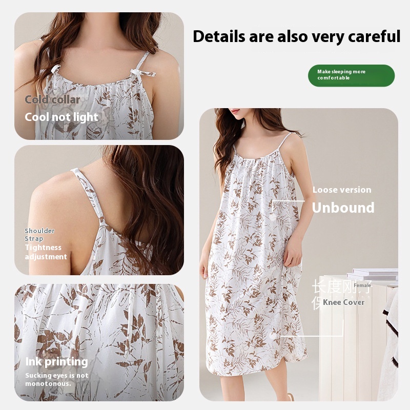 Women's Suspender Nightdress Pure Cotton7 AAntibacterial Summer Home Clothes Summer Ladies Casual Thin Pajamas