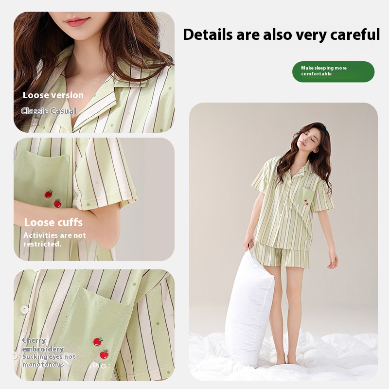 [With Chest Pad]Women's Pajamas Pure Cotton Summer Summer Simple Thin Short-sleeved Shorts Suit