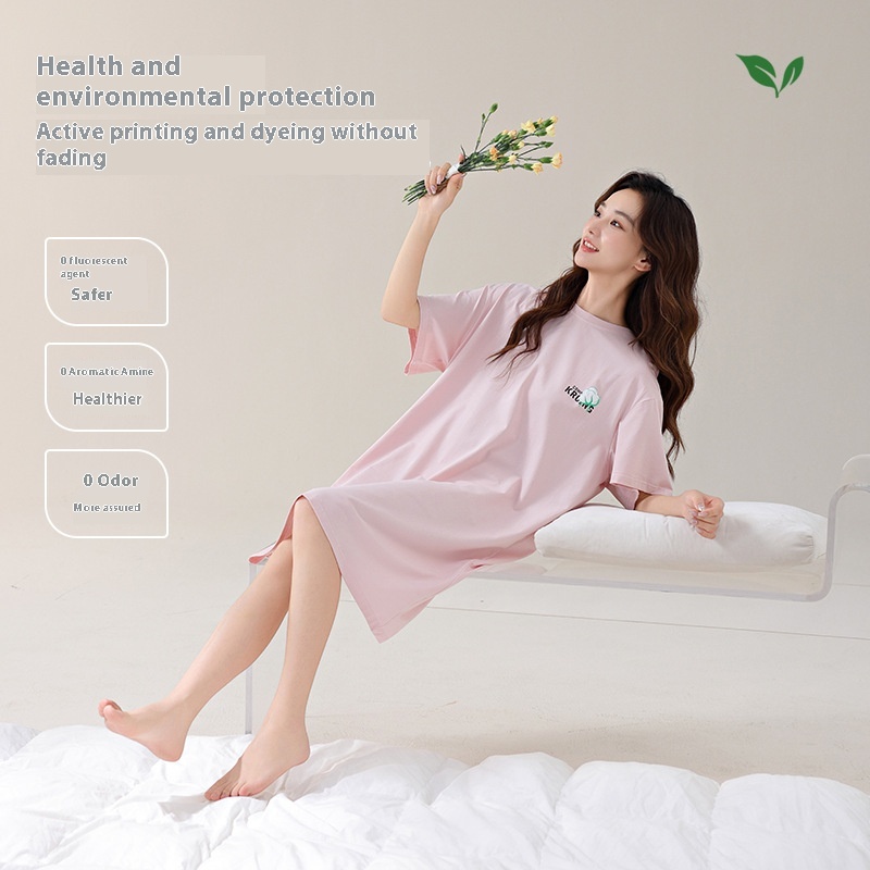 Nightdress Summer Women's Pure Cotton Pajamas Female Sense Summer Ladies7 AAntibacterial High-end Home Clothes