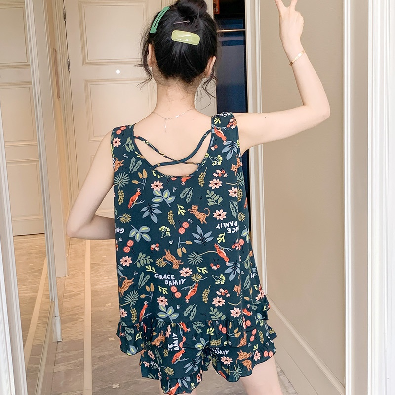 Beautiful Back Cotton Silk Pajamas Women's Thin Vest Shorts Two-piece Set Sweet Japanese Style Student Thin Artificial Cotton Home Clothes