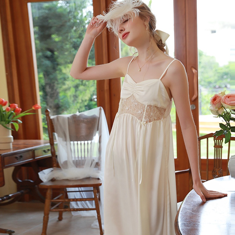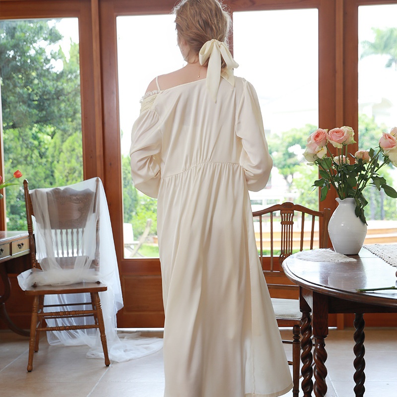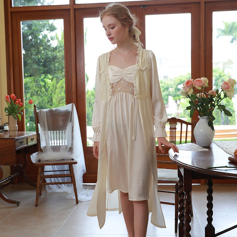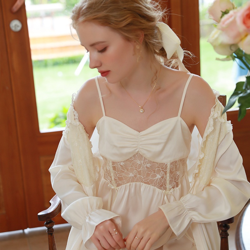 French Suspender Nightdress Female Two-piece Set High-grade Ice Silk Pajamas Spring And Autumn Long Sleeves Can Be Worn Outside