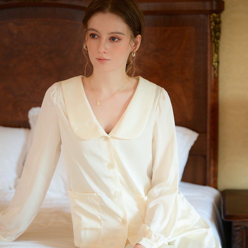 Ice Silk Pajamas Women's Long Sleeves Spring And Summer Thin Two-piece Set Loose High-end French Retro Home Clothes Summer Suit