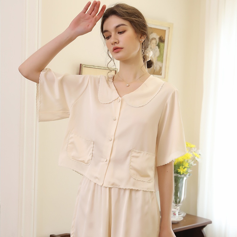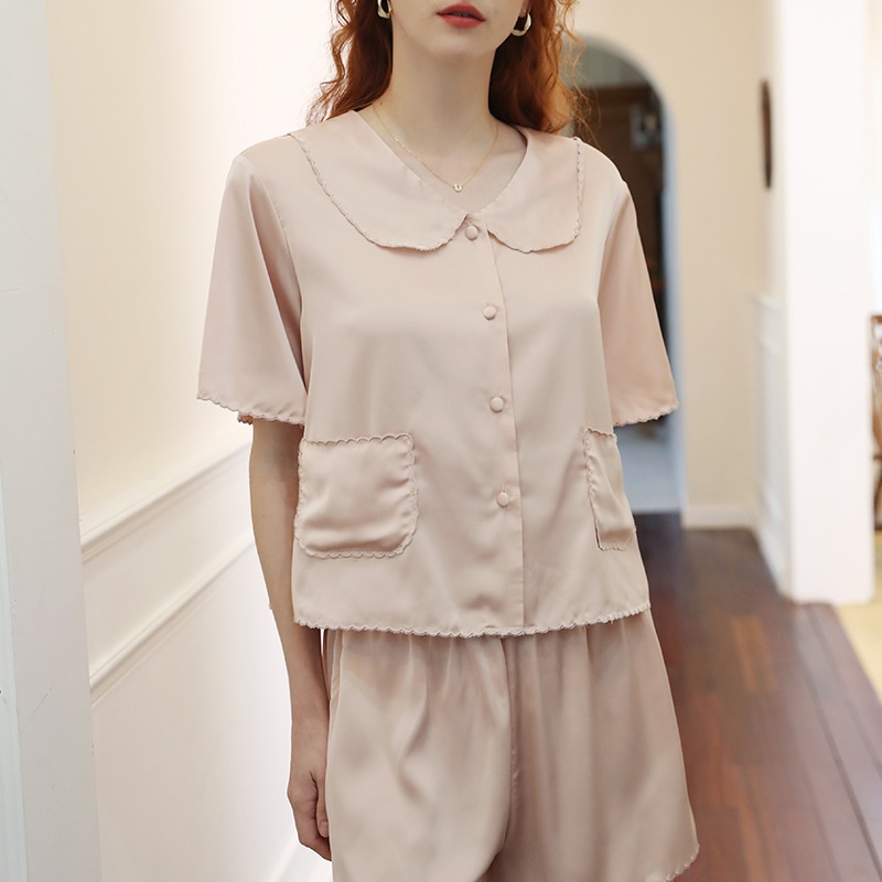French Ice Silk Pajamas Spring And Summer Women's Style High-end Solid Color Short-sleeved Home Clothes Suit