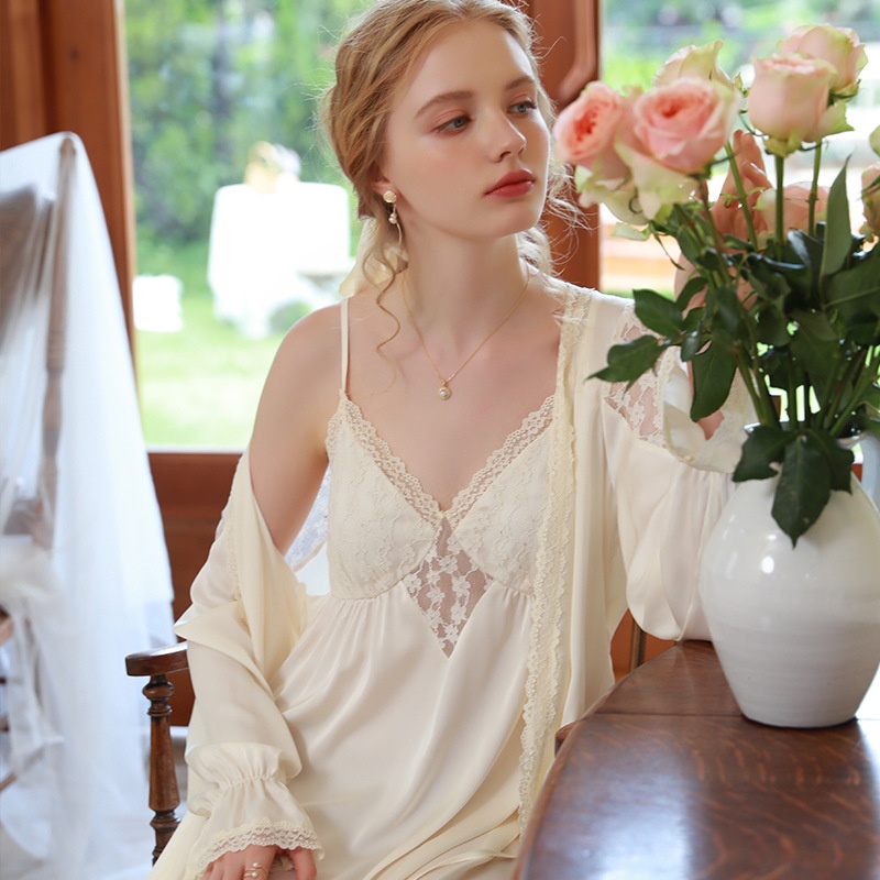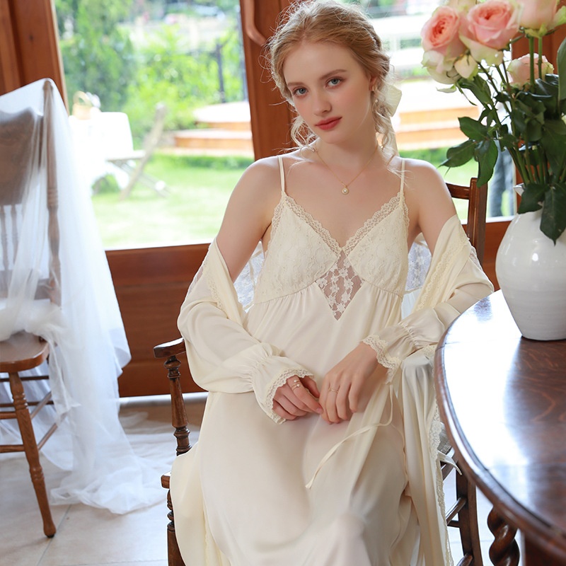 French Spring And Autumn Sexy Nightdress Women's Suspenders Outer Two-piece Suit Home Clothes Solid Color High-end Pure Desire Style