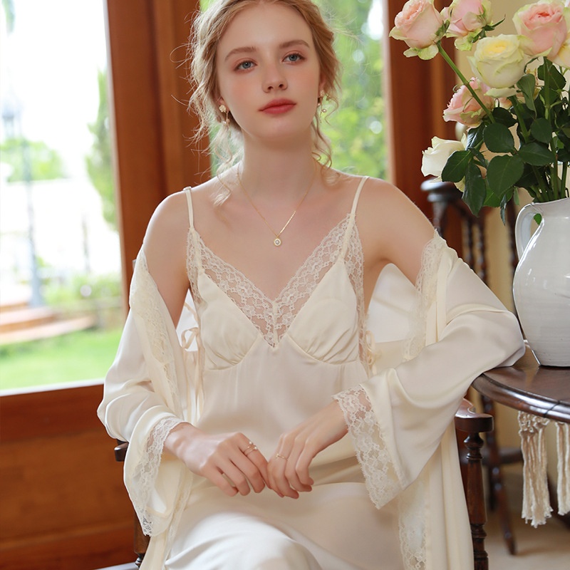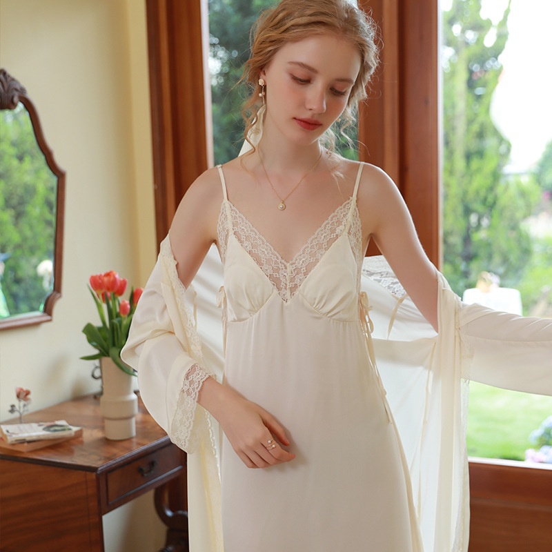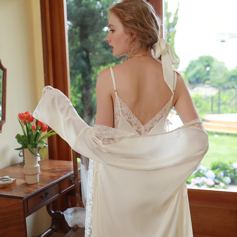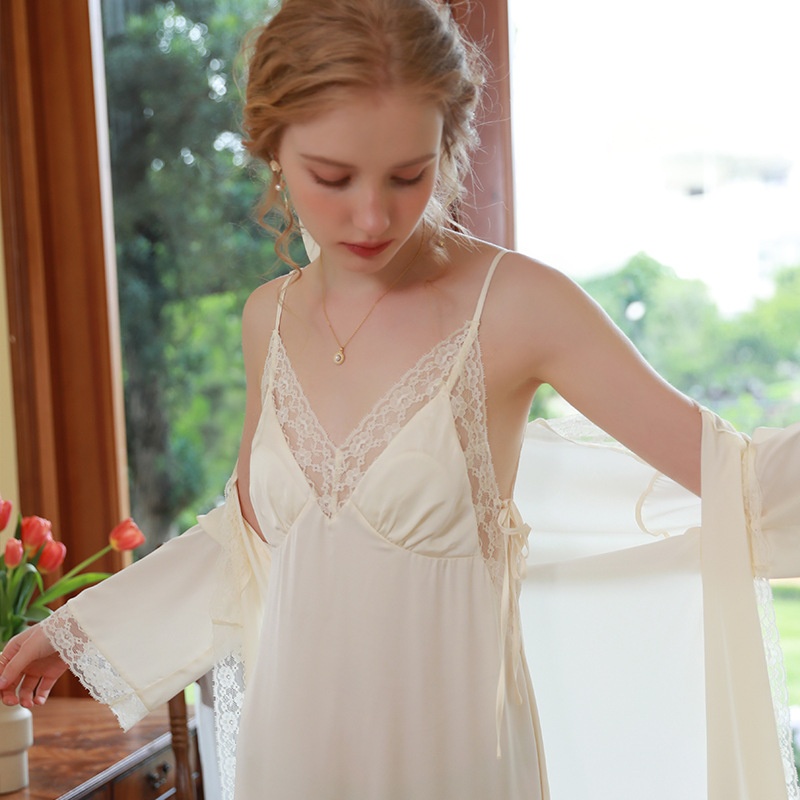 Sexy Nightdress For Women Spring And Autumn Suspenders Two-piece Suit Home Clothes Solid Color High-grade Pure Desire Style Autumn Ice Silk Pajamas